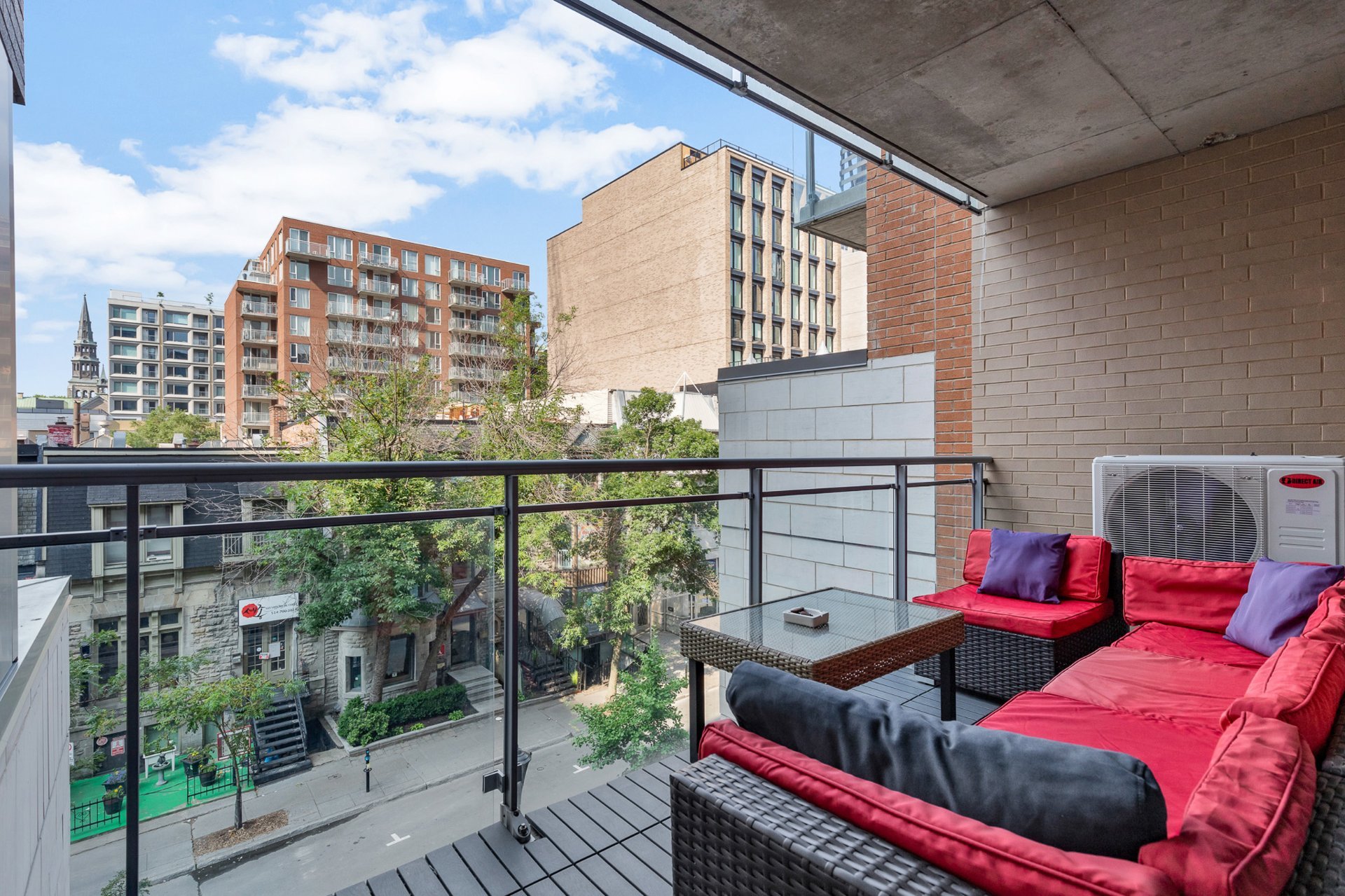 Welcome to this bright & spacious selling fully furnished 2-bedroom, 2-bathroom condo-featuring a private ensuite and abundant natural light and 1 indoor parking spot. Located on Bishop Street between René-Lévesque and Ste-Catherine, you're just a 2-minute walk from Concordia University, the metro, and a wide selection of shops, cafes, and top-rated restaurants. Enjoy the convenience of city living with 2 private balconies, including one off the primary bedroom, offering great city views. The seller invested in several upgrades throughout the condo enhancing the quality of finishes, comfort, and overall value compared to standard units.