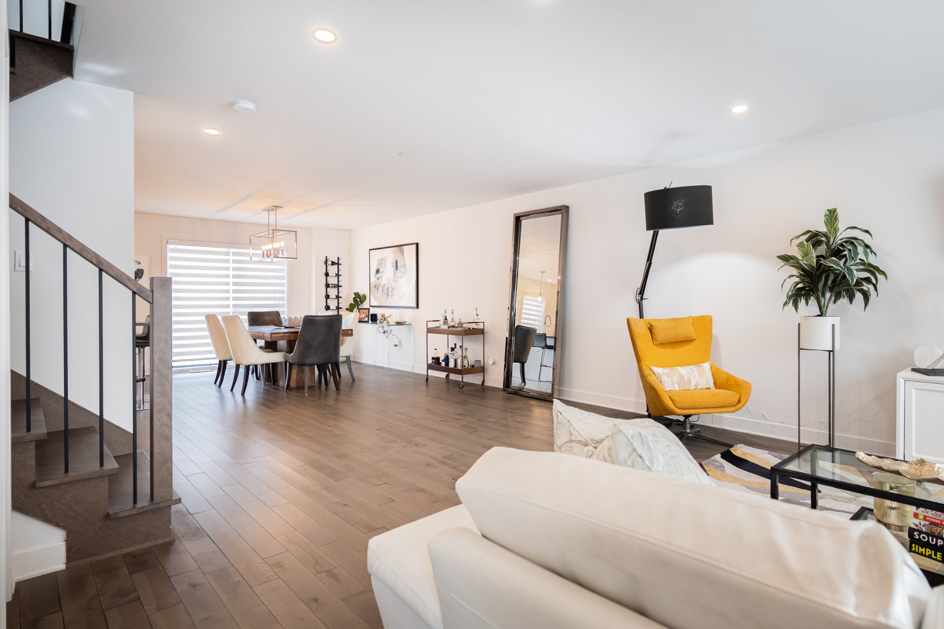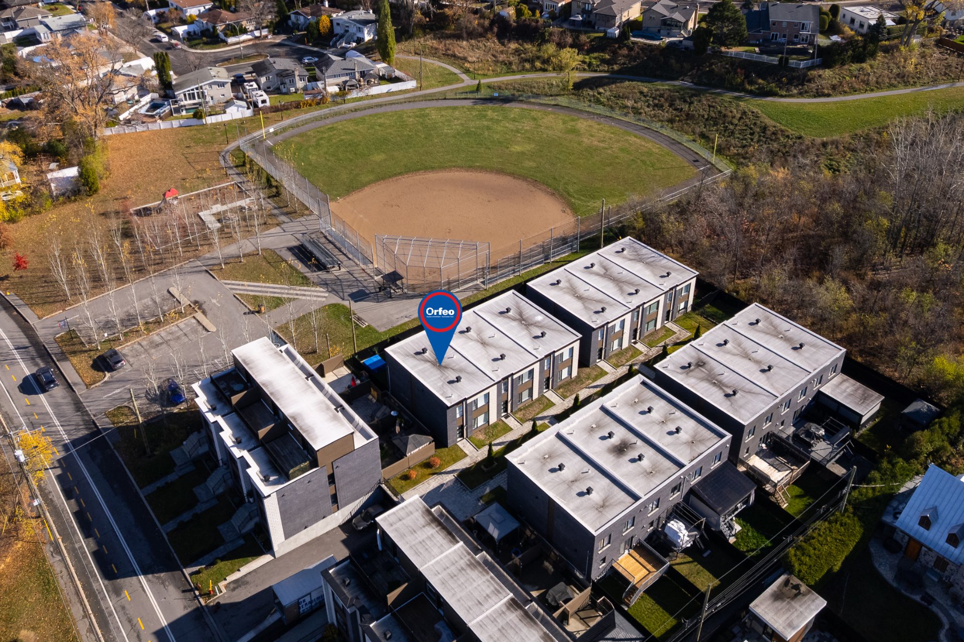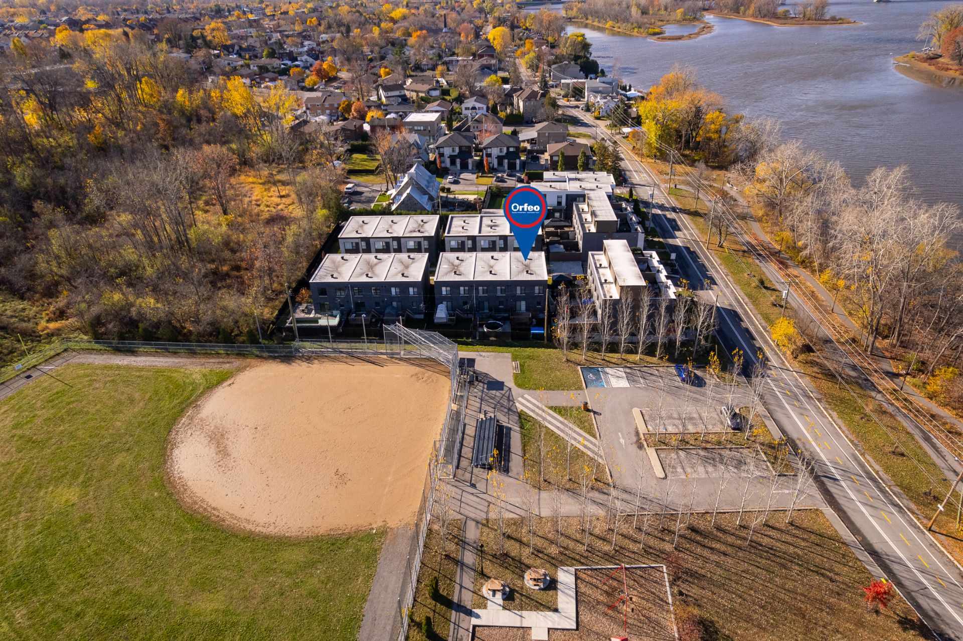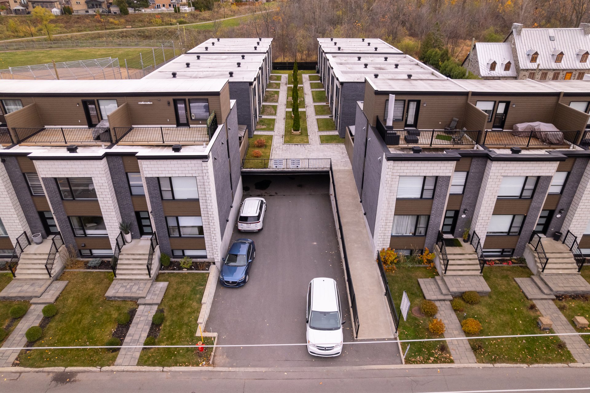 Beautiful modern 3-storey townhouse with finished basement and private double garage, built in 2019. Offers 3 spacious bedrooms, 2 full bathrooms plus powder room, separate laundry room and open-concept living filled with natural light. Elegant kitchen with black quartz island, hardwood floors and high-end finishes throughout. Large terrace with spa overlooking park and baseball field. Central heat pump, air exchanger, central vacuum and sprinkler system. Ideally located near the A25 bridge, schools, shops, cafés, parks, gym and all essential services in peaceful RDP by the river.