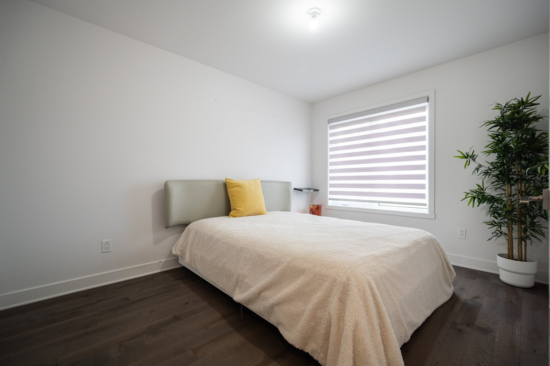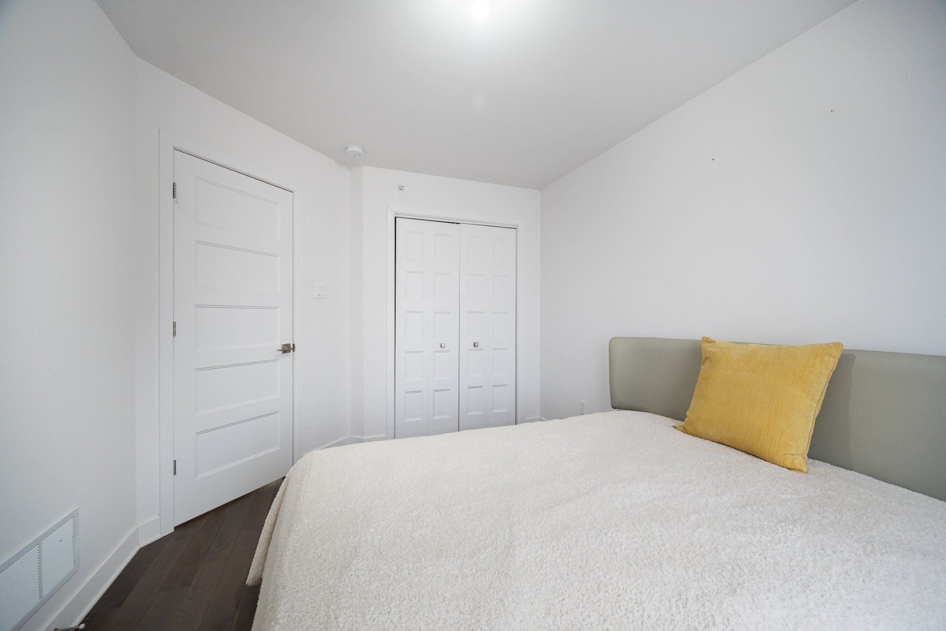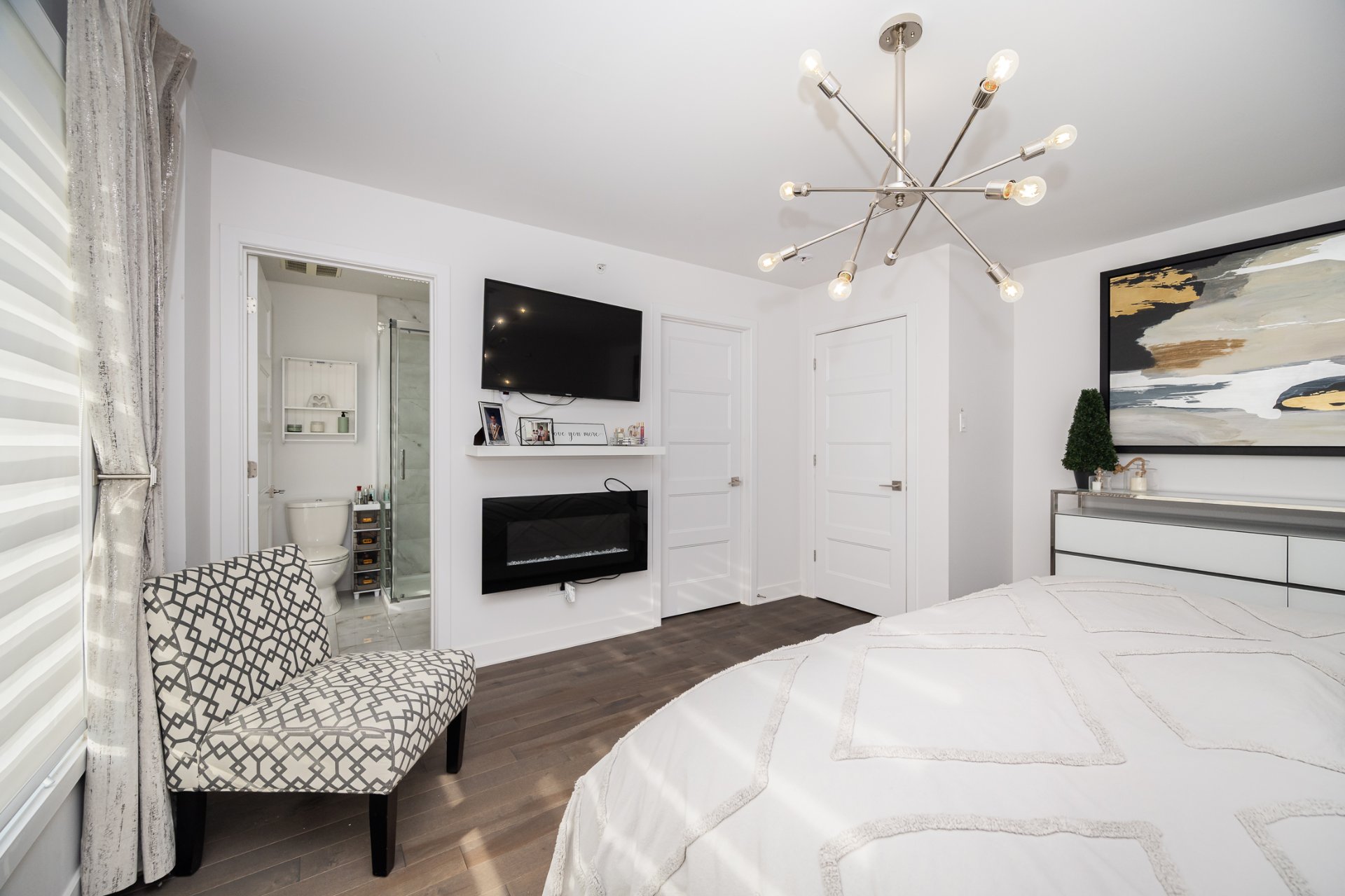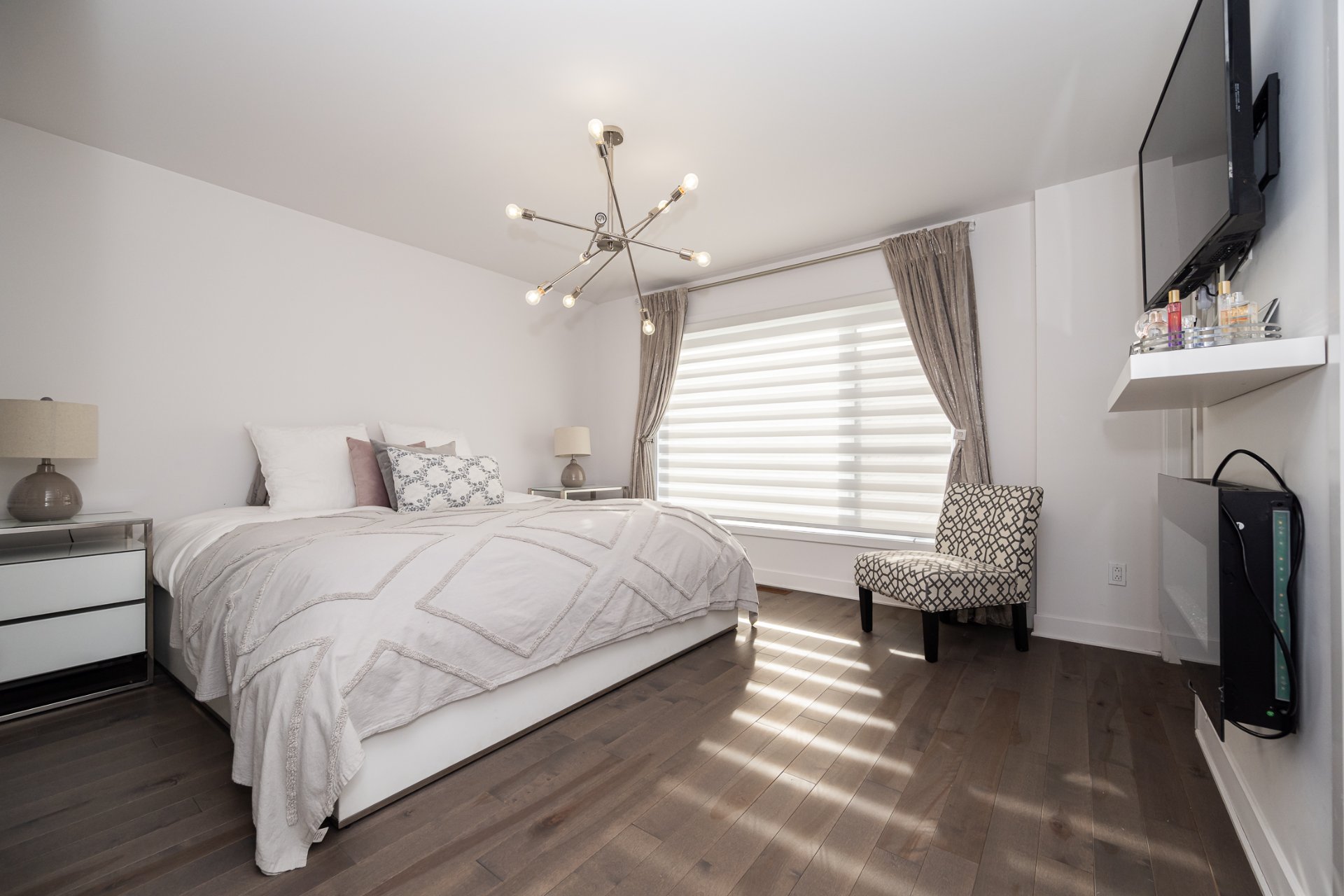 Beautiful modern 3-storey townhouse with finished basement and private double garage, built in 2019. Offers 3 spacious bedrooms, 2 full bathrooms plus powder room, separate laundry room and open-concept living filled with natural light. Elegant kitchen with black quartz island, hardwood floors and high-end finishes throughout. Large terrace with spa overlooking park and baseball field. Central heat pump, air exchanger, central vacuum and sprinkler system. Ideally located near the A25 bridge, schools, shops, cafés, parks, gym and all essential services in peaceful RDP by the river.