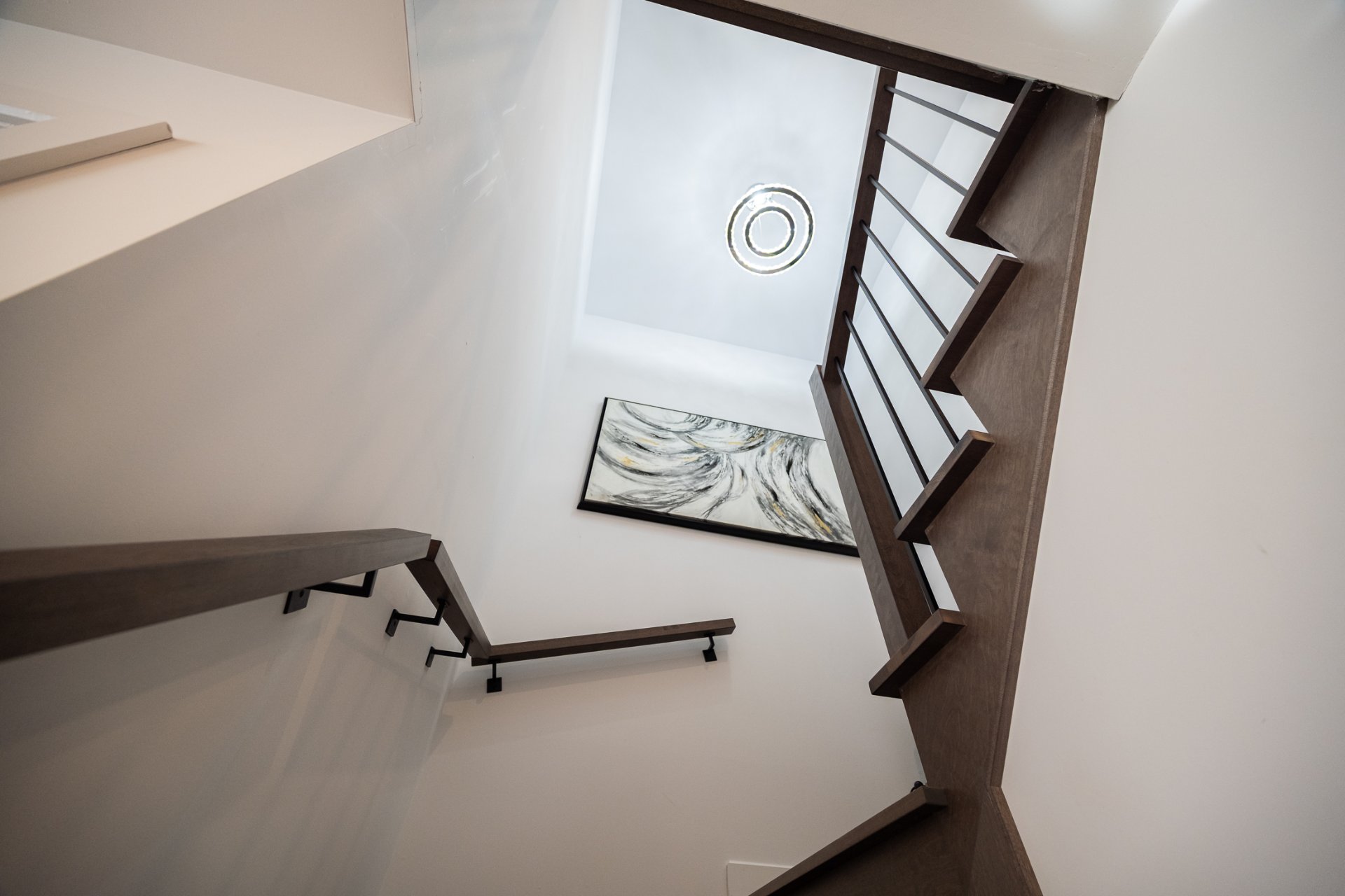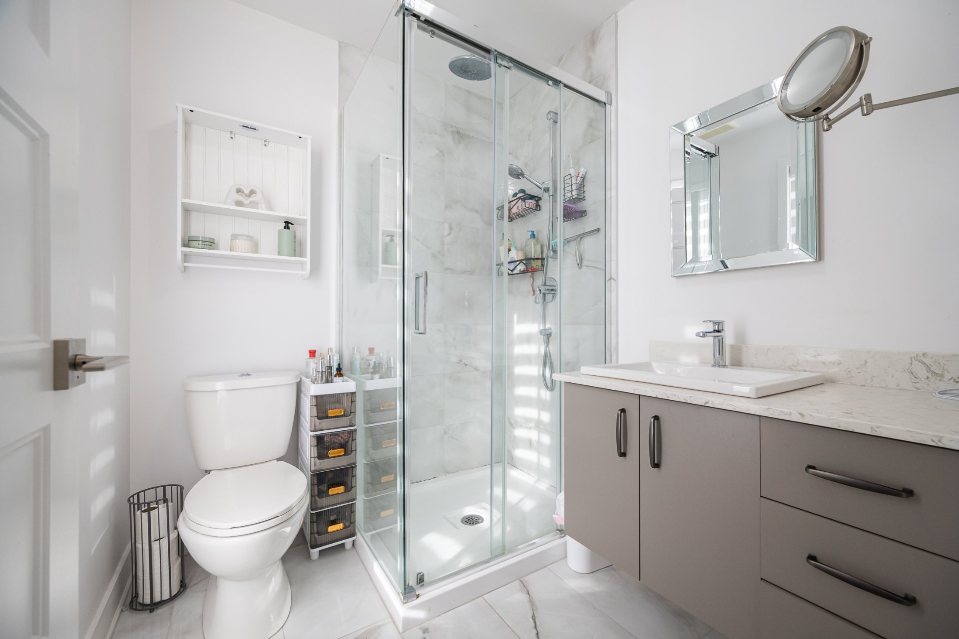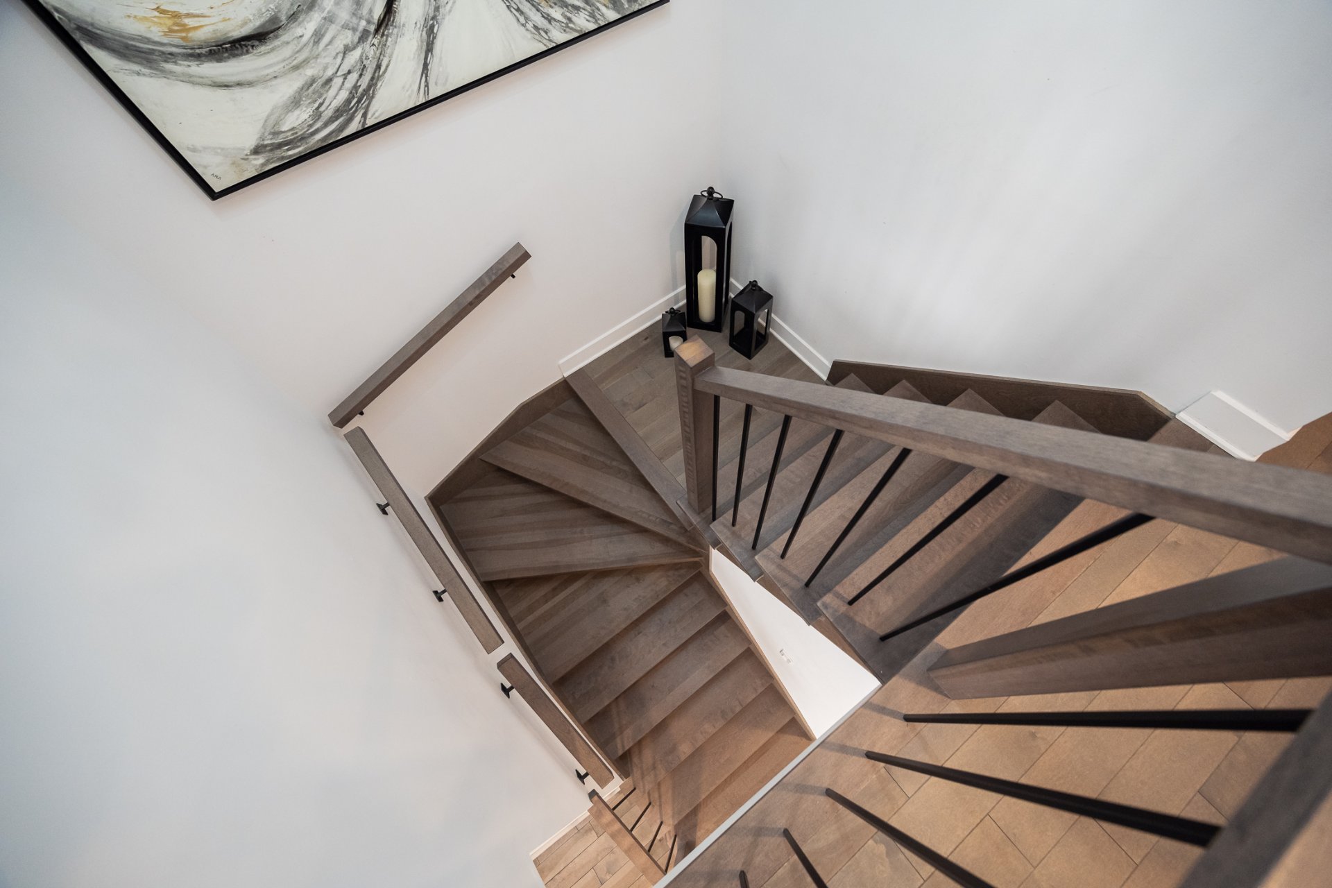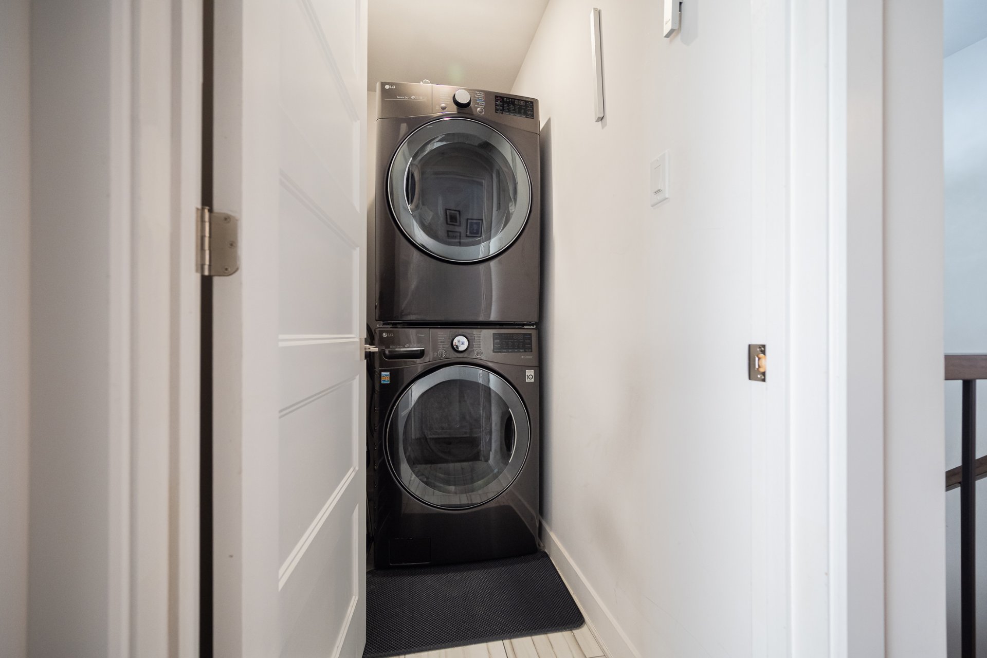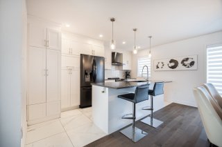 Beautiful modern 3-storey townhouse with finished basement and private double garage, built in 2019. Offers 3 spacious bedrooms, 2 full bathrooms plus powder room, separate laundry room and open-concept living filled with natural light. Elegant kitchen with black quartz island, hardwood floors and high-end finishes throughout. Large terrace with spa overlooking park and baseball field. Central heat pump, air exchanger, central vacuum and sprinkler system. Ideally located near the A25 bridge, schools, shops, cafés, parks, gym and all essential services in peaceful RDP by the river.